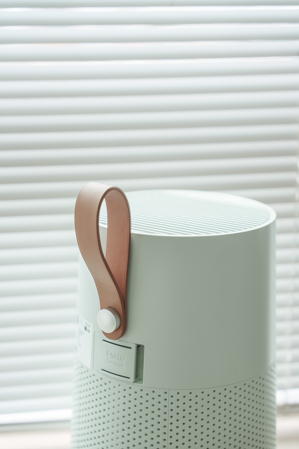 Phần nắp thay lõi lọc được bố trí khéo léo ở phần đáy, góp phần tạo nên tổng thể liền mạch, gọn gàng và tối giản. Bên cạnh đó, người dùng còn có thể cá nhân hóa máy lọc khí thành một món nội thất phù hợp với không gian sống thông qua các phụ kiện ghép nối như quai xách da, khay cắm hoa.